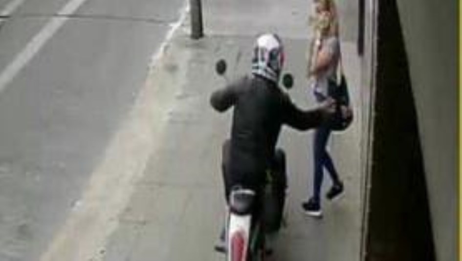 En estas imágenes se puede ver a dos mujeres que caminan acompañadas de dos menores por la calle antes mencionada cuando dos sujetos a bordo de una motocicleta se paran a su costado, uno de ellos que vestía pantalón negro y sudadera azul bajó de la moto y despojó de una bolsa color nega a una de víctimas,luego se dirige con otra de las mujeres y del mismo modo la despoja de sus pertenencias; posteriormente el sujeto sube de nueva cuenta a la motocicleta para escapar con rumbo desconocido.